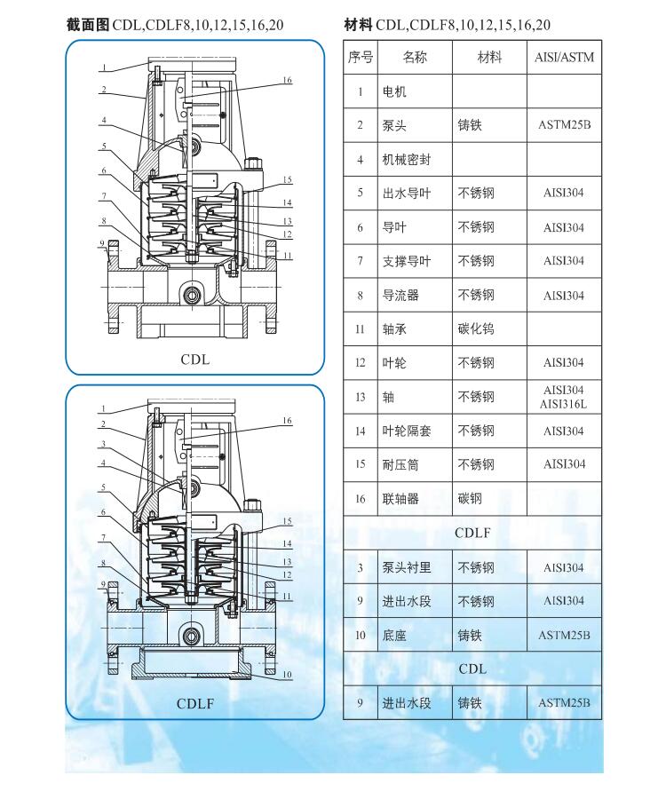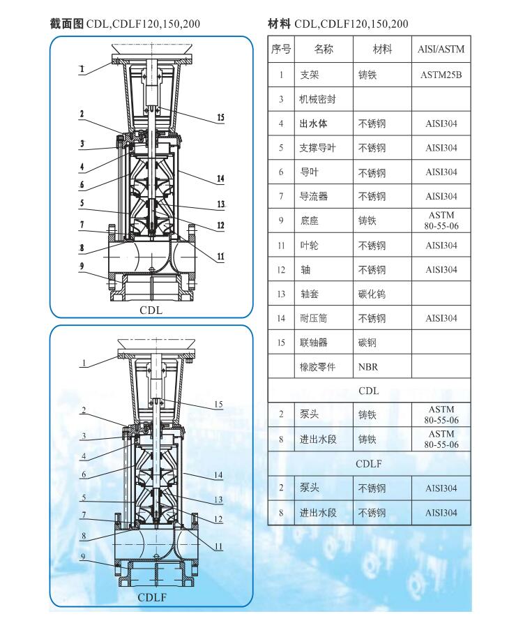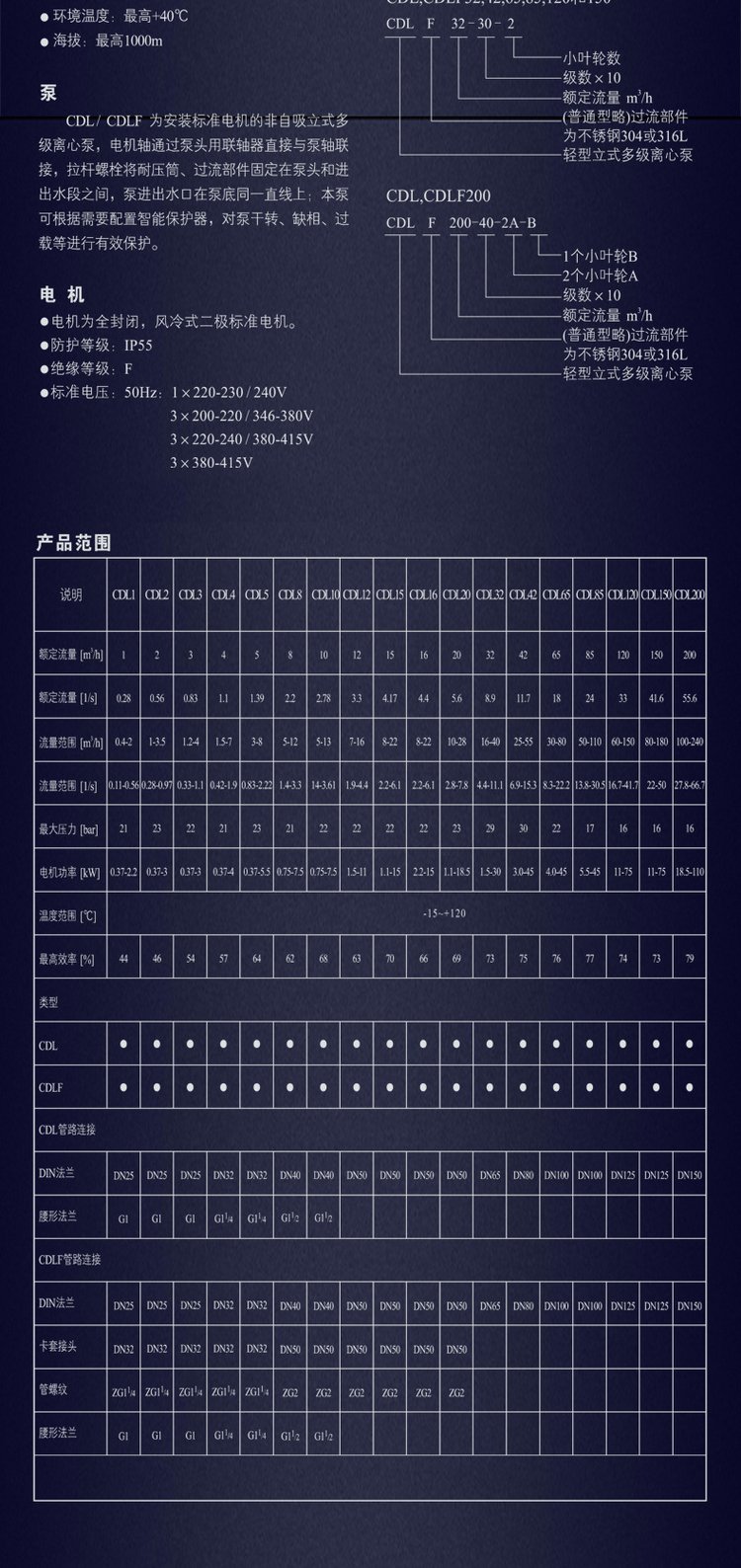 産品(pǐn)名稱:CDL,CDLF輕型立式多(duo)級離心泵
