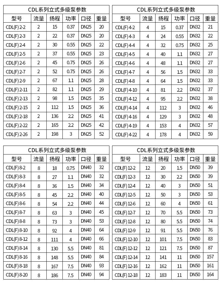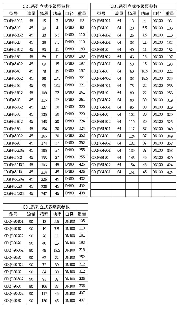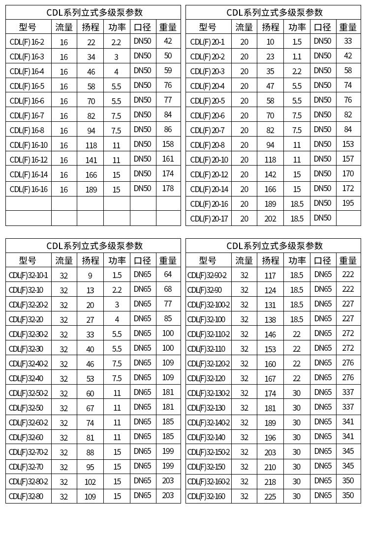 CDLF不(bú)鏽鋼多級泵(bèng)技術參數