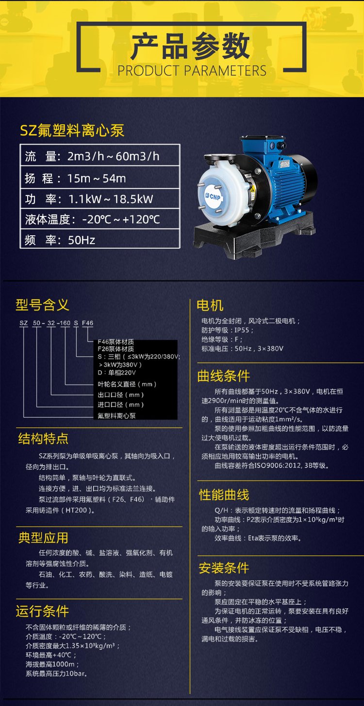 産品名(míng)稱:氟塑料離心(xīn)泵SZ系列耐強酸(suān)強堿強腐蝕液(yè)體輸送泵酸洗(xi)泵